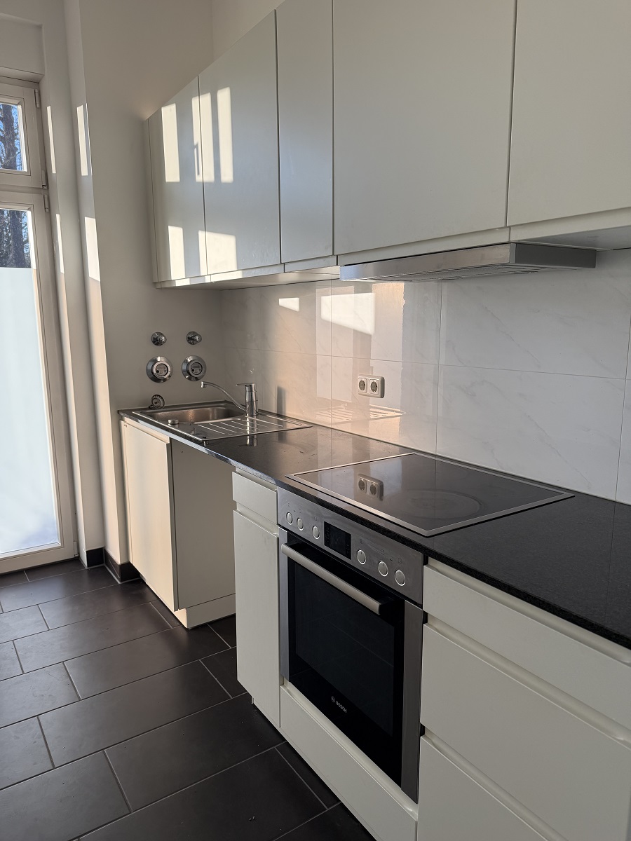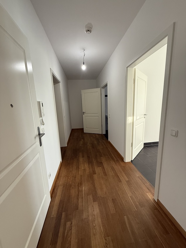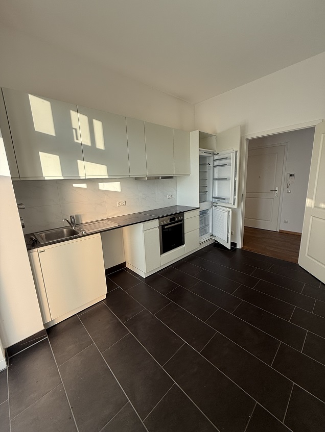 Die 2-Zimmer-Wohnung verfügt über Parkettböden mit Fußbodenheizung sowie eine Einbauküche. Küche und Bad sind gefliest.
