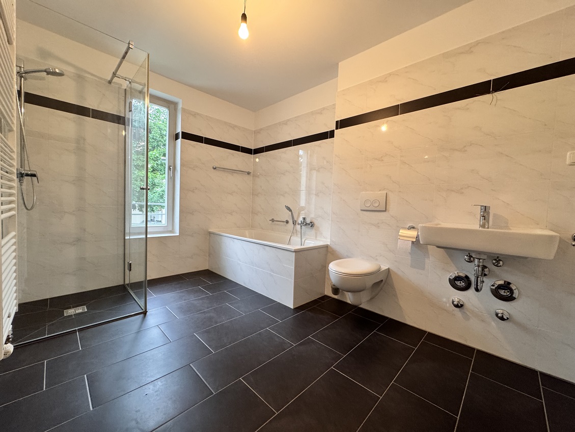Die großzügige, helle 4-Zimmerwohnung verfügt über eine Küche, großes Dusch- und Wannenbad mit Fenster, Gäste-WC, Flur, großes Wohn-/ Esszimmer, drei Schlafzimmer sowie einen Balkon.
